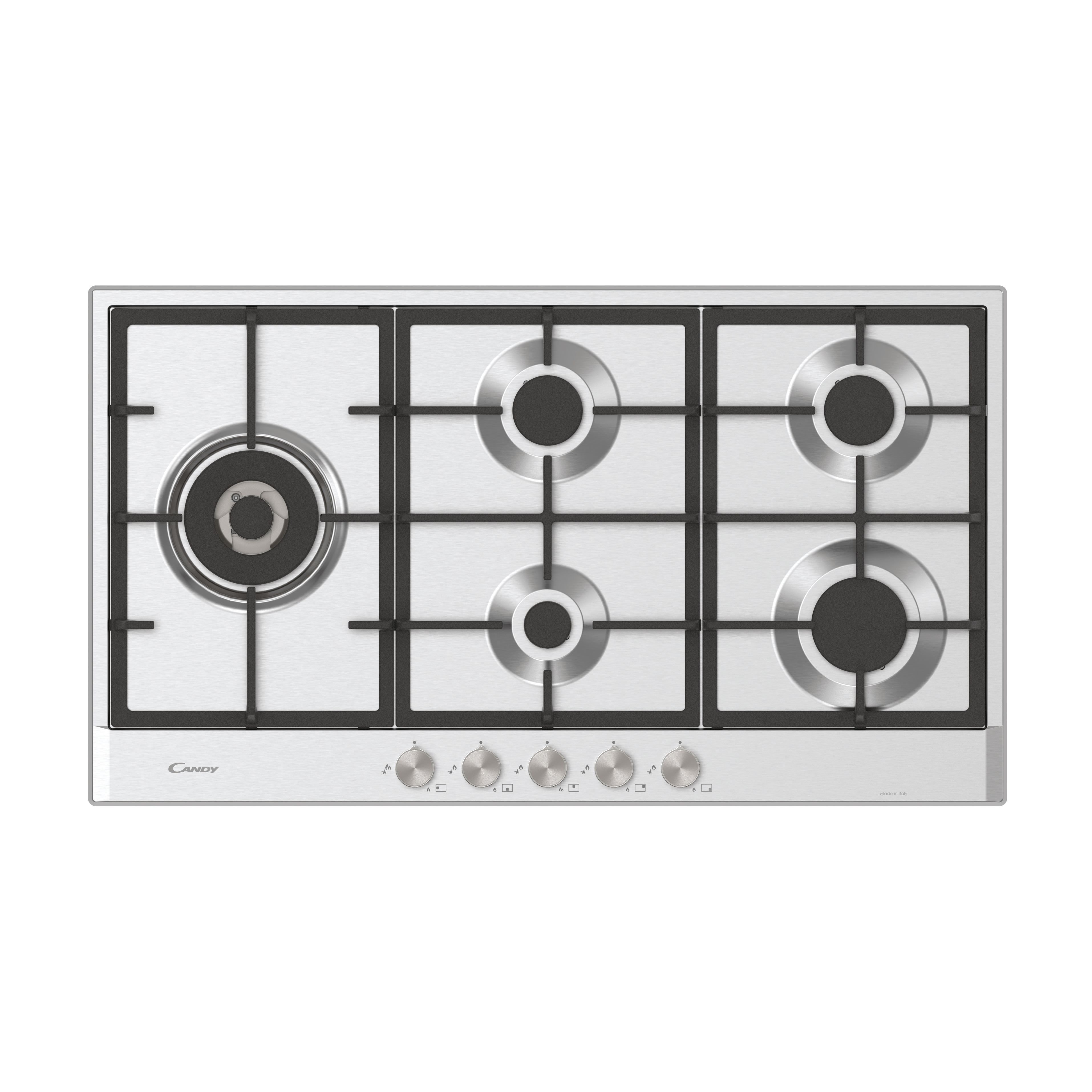 كاندي بلت ان سطح غاز مقاس 90 سم 5 عيون بعين جانبية للقلي شبك زهر 5 مفاتيح معدنية صناعه ايطالي اينوكس موديل CHG9WL38WPX SASO