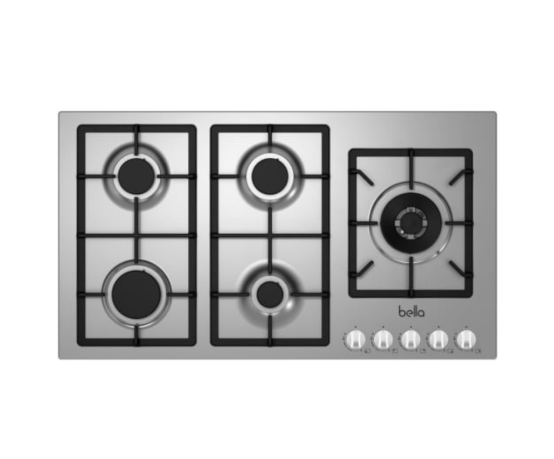 سطح BELLA بيلا - 90 سم - 5 عين غاز هيفي ديوتي . شعلة ثلاثية . إشعال ذاتي . صمام أمان كامل . مفاتيح كروم امامية . صنع في إيطاليا - B91 GX 50H