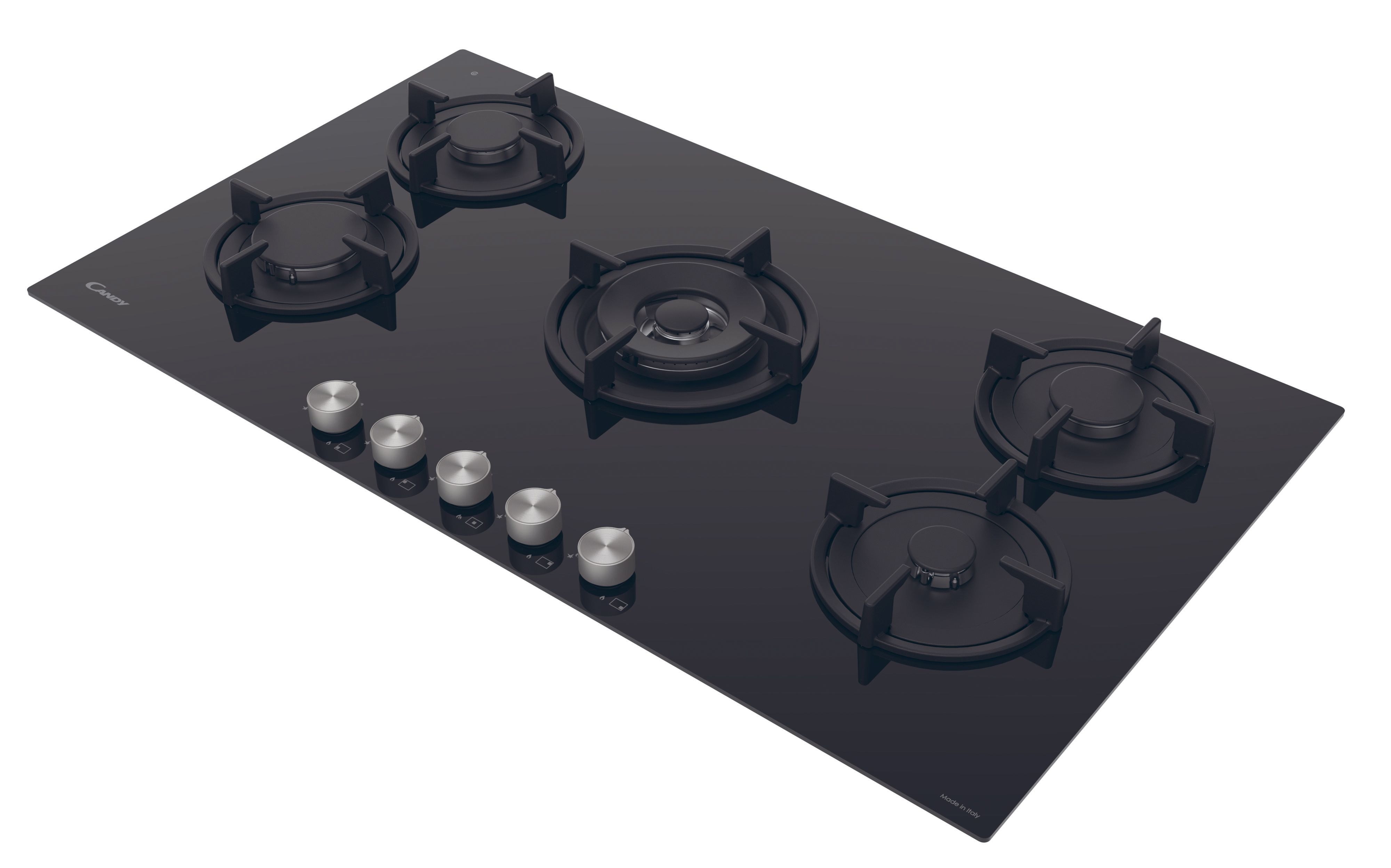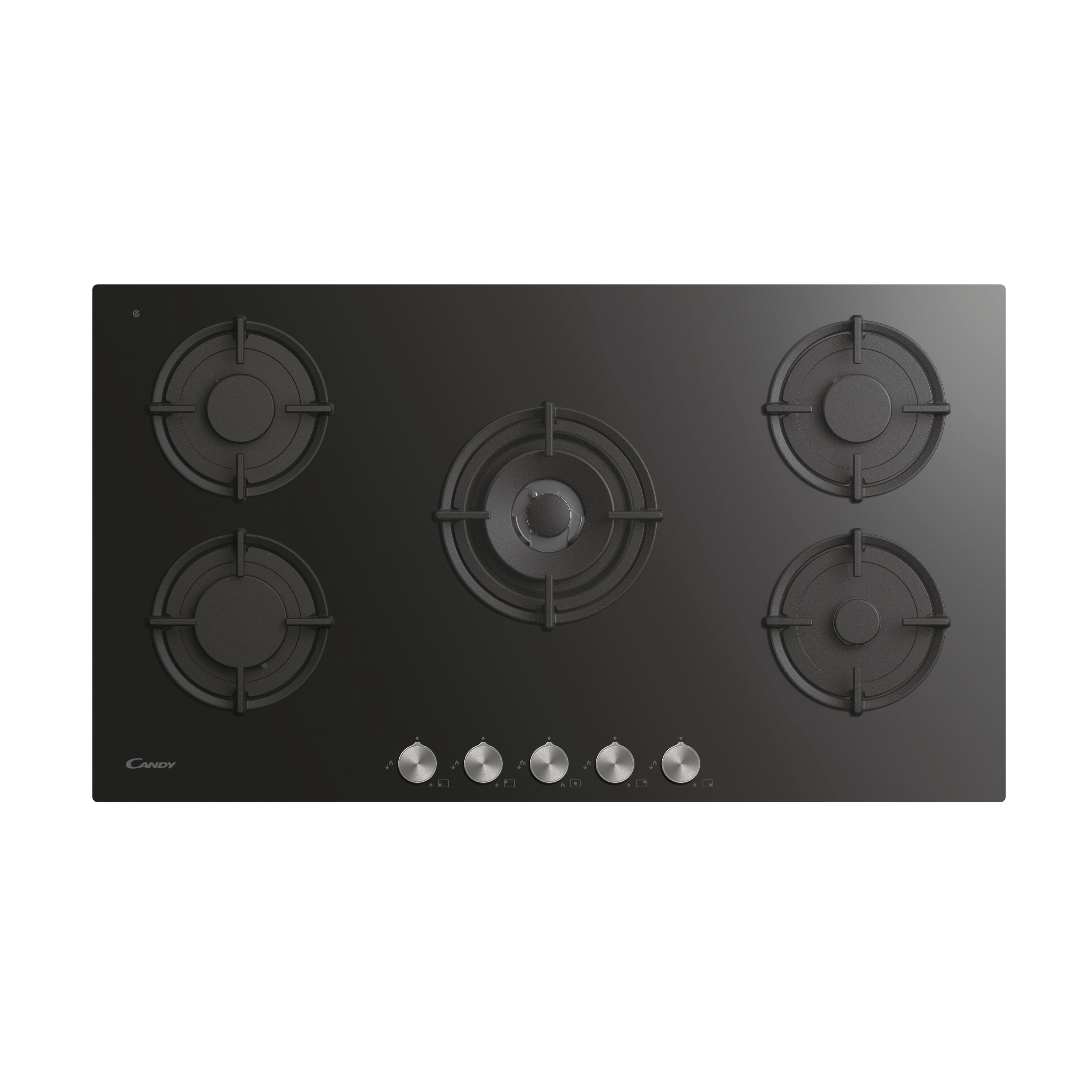 كاندي سطح بلت ان مقاس 90 سم 5 شعلات غاز شبك زهر مفاتيح معدنية صناعه ايطالي زجاج اسود - CVG938WPB SASO