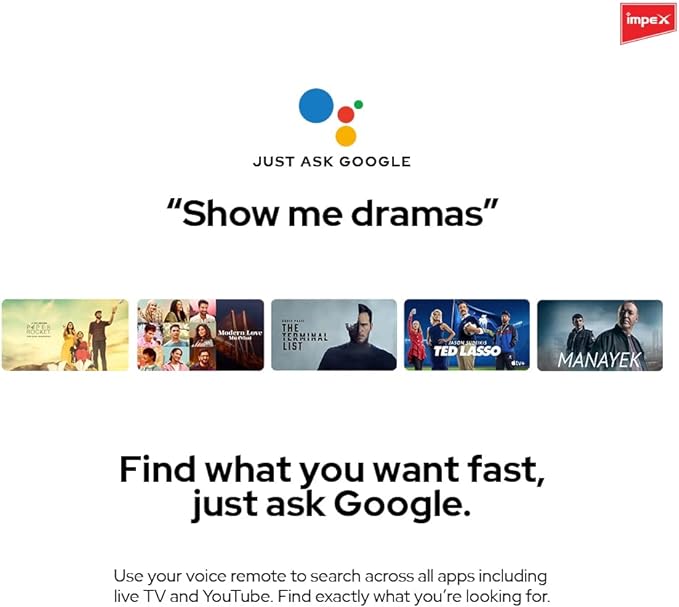 تؤمن إمبكس بإحداث فرق إيجابي في حياة عملائنا من خلال الابتكارات التكنولوجية. يخضع كل منتج لفحوصات الجودة الصارمة قبل أن يصل إلى العملاء. لقد ساعدتنا فلسفة وضع العملاء في المقام الأول على تحقيق مستويات أعلى خلال العقود الماضية وحصلت على ثقة العملاء المميزين في جميع أنحاء العالم. تقدم لك إمبكس تلفزيون UHD GOOGLE LED مقاس 75 بوصة (evoQ 75S4RBC2) اكتشف الطريقة الأكثر ذكاءً وأسهل للاستمتاع بالترفيه الذي تحبه مع Google يأتي هذا التلفزيون مع مساعد جوجل الذي يساعدك على التحكم في تلفزيونك باستخدام صوتك. يمكنك الاستمتاع بتجربة استماع مسرحية غامرة مع تقنية Dolby Atmos Audio وDTS البديهية. يتمتع تلفزيون LED الذكي هذا بزاوية مشاهدة واسعة تسمح لك بالاستمتاع بالصور الحقيقية ووضوح الفيديو من أي زاوية في غرفتك. توفر لوحة Zero Bright Dot الأنيقة مظهرًا نحيفًا للغاية وتنسجم جيدًا مع مساحة الترفيه الخاصة بك. أثبتت إمبكس تميزها في خدمة ما بعد البيع بمساعدة خدمات TechZone، التي تمتلك أكثر من 30 مركز خدمة في البلاد وحولها.