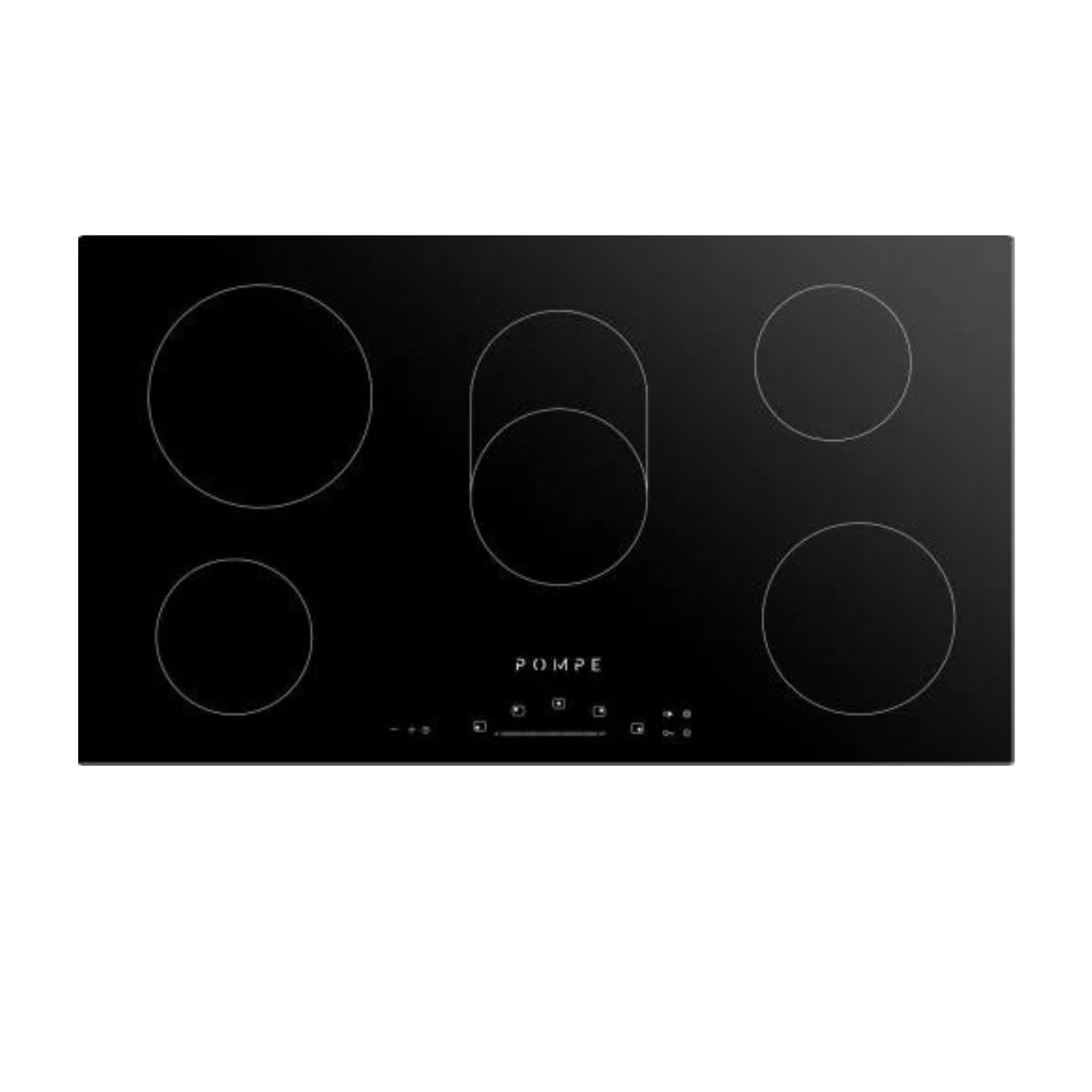 موقد كھرباء 90 سم 5 عیون زجاج سیرامیك أسود عین بیضاویة - التحكم أمامي باللمس - أمان الكتروني لمبة تحذیر للمكان الساخن - قفل أطفال التحكم بمستوى الحرارة 220-240 فولت - 60-50 ھرتز - 8600 واط صنع في ایطالیا