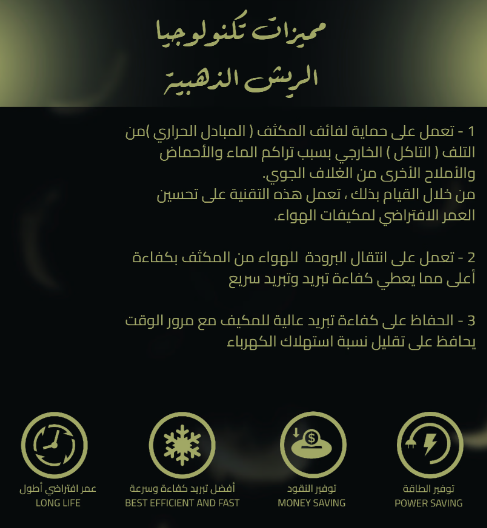 ريش ذهبية 🟡 / تنظيف ذاتي 🧼 / توزيع هواء في 4 اتجاهات 🔄 / خاصية الاستشعار 🎯