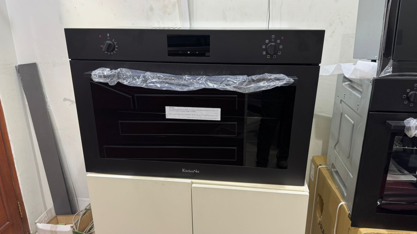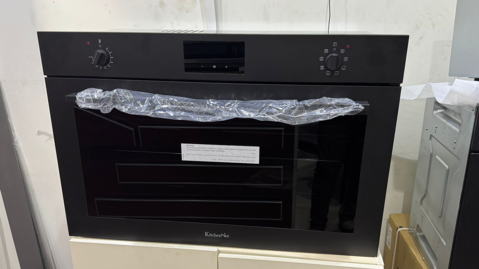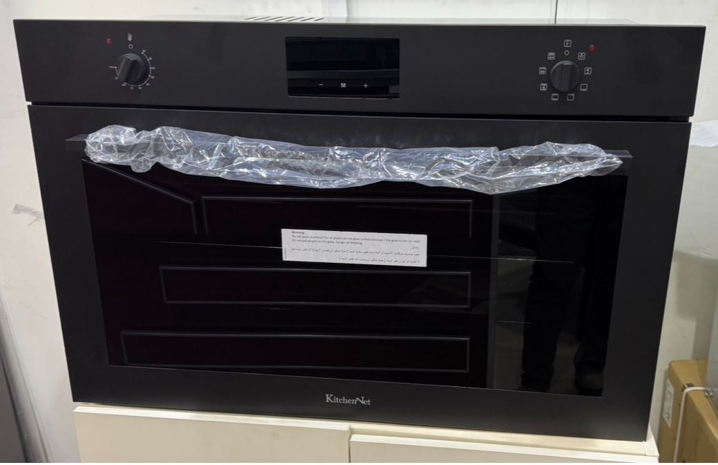 كيتشن نت - فرن كهربائي بلت ان 90 سم أسود - 2 مفاتيح للتحكم + شاشة عرض معلومات الطبخ - 25 لتر - باب آمن للأطفال - باب هيدروليك للإغلاق الناعم - MP2202010
