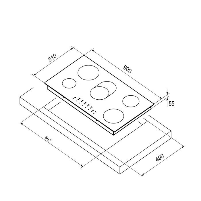 سطح MASTERgas ماستر جاز - بلت ان – 5 عيون سيراميك - 1 عين ثلاثية – عين دبل - تحكم متطور يعمل باللمس - قفل آبوي ضد عبث الأطفال - مستويات متعددة لدرجة الحرارة 9 مستويات – 90 سم – بولندي H95ctp