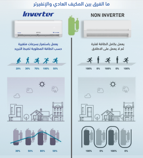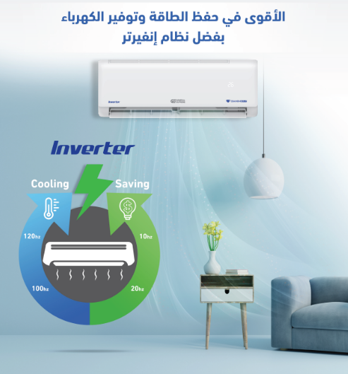 - 🔄 الضاغط: دوّار إنفيرتر (Inverter) – موفر للطاقة