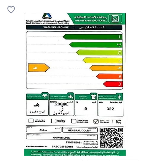 🏆 راحة، أمان، كفاءة عالية – غسالة جنرال جولدي 9 كجم هي خيارك المثالي