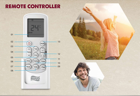 أزرار جهاز التحكم عن بُعد (Remote Controller) – مكيف RUUD