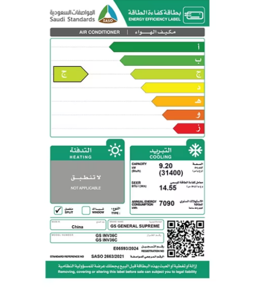 ❄️🧊 مكيف جنرال سوبريم دايموند بلو إنفيرتر 36 ألف وحدة – بارد فقط – بقوة تبريد 31,400 وحدة – موديل: GSINV36C